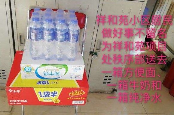 康居家園公租房好心住戶(hù),第一時(shí)間把2箱84消毒液、100個(gè)口罩送到了項目經(jīng)理手中,便利店工作人員送來(lái)了方便面。祥和苑公租房不愿留下姓名的業(yè)主把方便面、牛奶、礦泉水放到了秩序維護部?;菪略饭夥恐驹刚邚堖M(jìn)軍捐贈了25千克消毒液、20雙勞保手套。兄弟單位金橋熱網(wǎng)分公司為物業(yè)工作人員提供了護目鏡。