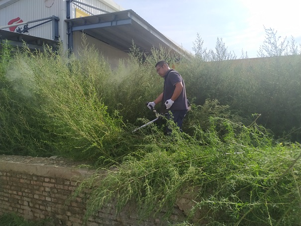 在除草過(guò)程中,大家不怕臟不怕累,默契配合,手持工具,將園區內草坪、綠化帶雜草進(jìn)行了集中清理。盡管已立秋,但太陽(yáng)的威力絲毫未減。除草過(guò)程中,大家的衣服很快就被汗水浸濕,但大家沒(méi)有退縮,直到雜草被清除干凈,整個(gè)園區的雜草被徹底清除干凈,才帶著(zhù)滿(mǎn)身汗水和喜悅的笑容離開(kāi)。