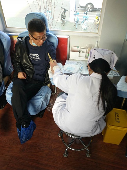 10時(shí)整,報名獻血的干部職工陸續進(jìn)入采血車(chē),大家首先登記體檢,排隊依次進(jìn)行獻血。