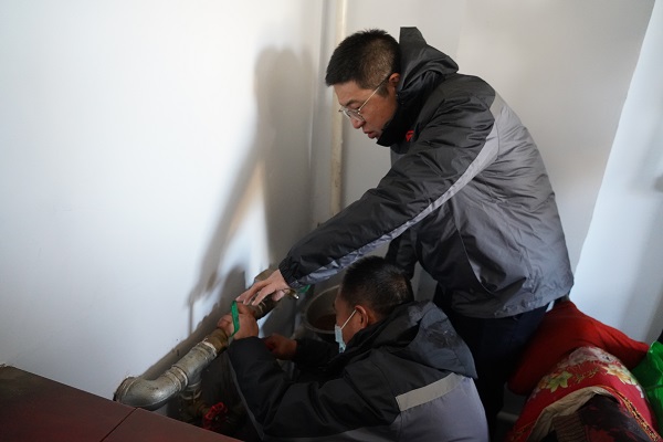 在回訪(fǎng)村中二站南線(xiàn)的路上,一位年近九十的大娘著(zhù)急地朝我們走來(lái)。她說(shuō):"到我家看看吧,暖氣不熱。"工作人員跟隨老人來(lái)到其家中。大娘家為小南房,大約20平米左右,四面漏風(fēng),她的老伴身著(zhù)棉衣盤(pán)腿坐在炕上。工作人員開(kāi)始進(jìn)行排氣、調節閥門(mén)、檢查過(guò)濾器,最后排查發(fā)現管道內有異物堵塞,經(jīng)過(guò)排污,大娘家中的暖氣逐漸升溫。大爺激動(dòng)地說(shuō):"你們給我修暖氣,忙的連口水也沒(méi)喝,娃娃們真好!我家院里有李子樹(shù),明年李子熟了,你們過(guò)來(lái)吃。"客服處處長(cháng)云躍看著(zhù)大爺家簡(jiǎn)陋的窗戶(hù),略有所思.....稍后他說(shuō):"我們過(guò)幾天給大爺家安裝棉窗簾和門(mén)簾,讓溫暖到位、服務(wù)到位,室溫達標,讓老兩口溫暖過(guò)冬。"