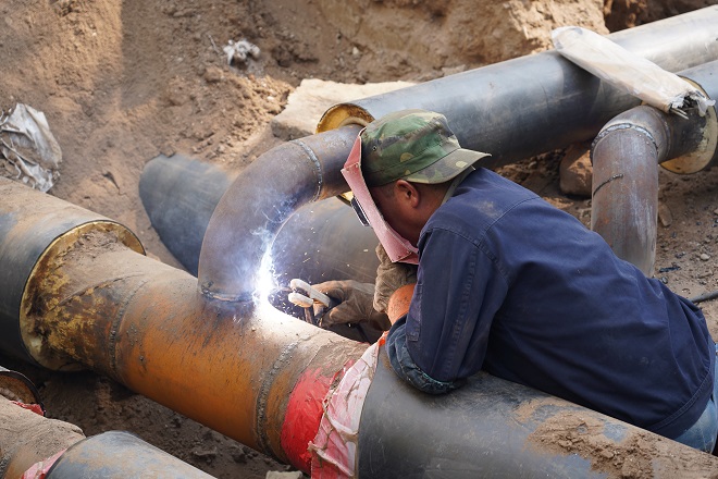 白云偉說(shuō),"這段供熱管線(xiàn)下面還有一段天然氣管線(xiàn)。這段管溝長(cháng)度僅55米多,但施工難度較大,機具僅開(kāi)挖了表層,其余是人工開(kāi)挖,人工開(kāi)挖就進(jìn)行了三天,55米管溝開(kāi)挖、鋪設管道就用了一周的工期。"