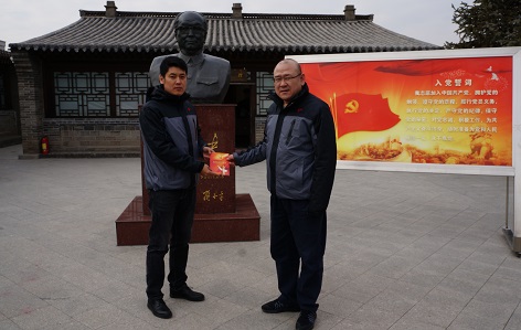 參觀(guān)結束后,物流公司黨支部在烏蘭夫同志銅像前合影留念,同時(shí),給黨員趙慧明同志過(guò)了“黨員政治生日”,大家面對鮮紅的黨旗重溫入黨誓詞,更加明確了共產(chǎn)黨人的初心和使命。
