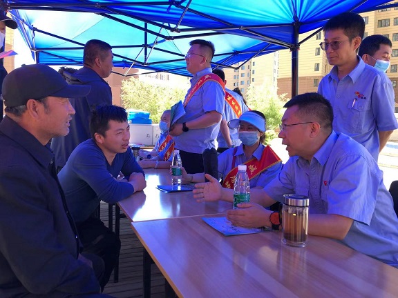 電腦、座椅的布置等準備工作 ?;顒?dòng)中,現場(chǎng)氣氛活躍 ,人流較多,志愿者們不怕風(fēng)吹日曬,熱情的向廣大群眾發(fā)放了公司專(zhuān)門(mén)制作的公租房銷(xiāo)售和產(chǎn)權辦理宣傳圖冊,并現場(chǎng)為部分購房群眾發(fā)放購房發(fā)票和網(wǎng)簽合同。大家現場(chǎng)還詳細介紹了公租房購買(mǎi)條件、流程以及辦理不動(dòng)產(chǎn)權證等政策知識,耐心的解答了群眾關(guān)于購買(mǎi)公租房和辦理產(chǎn)權政策的各種疑慮 、困惑 。同時(shí)黨支部書(shū)記郭依群同志 、經(jīng)理李錚同志積極聽(tīng)取群眾意見(jiàn)建議,主動(dòng)協(xié)調市住建局開(kāi)放小區北門(mén),方便群眾出行 。